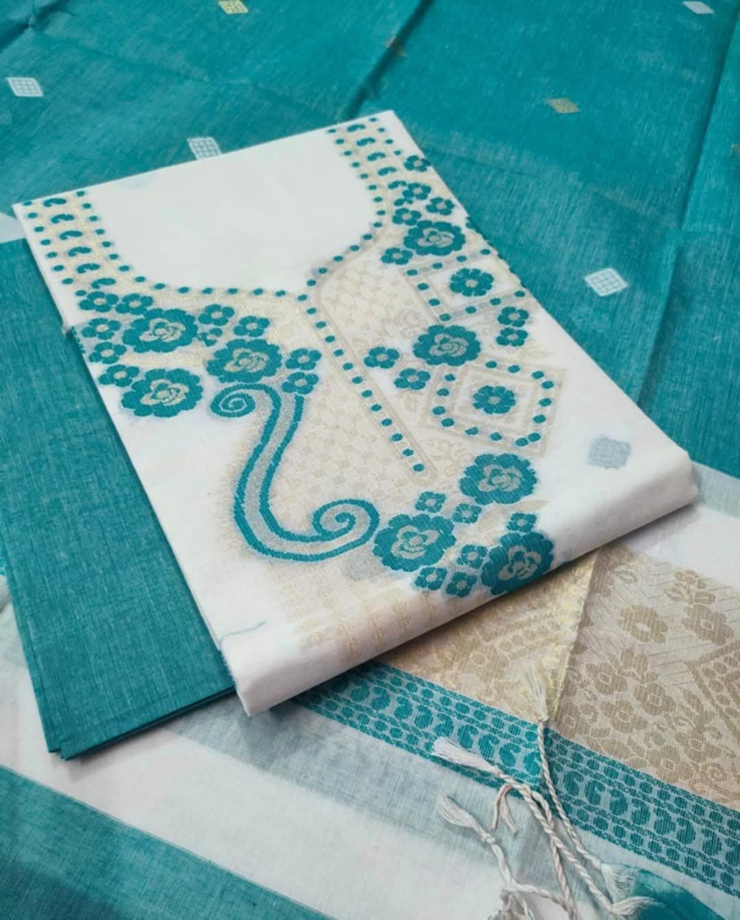 ✅বাংলার ঐতিহ্যবাহী জামদানি তাঁতের থ্রিপিস ১০০% হাতের বোনা সুতি থ্রিপিস।